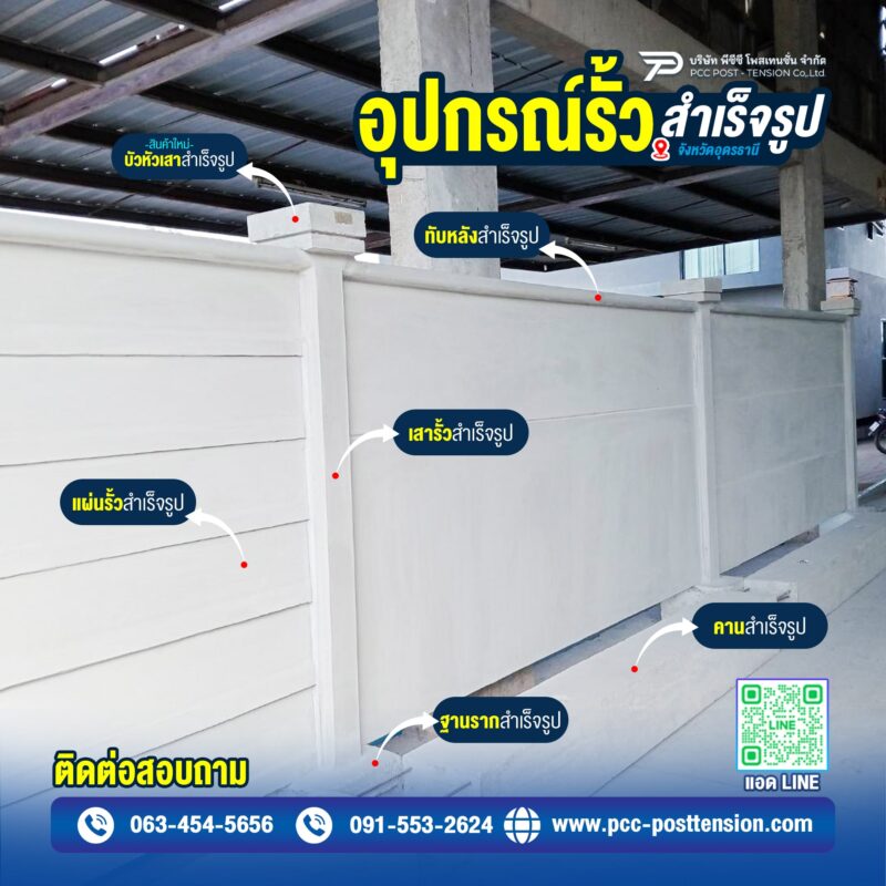 บริษัท พีซีซี โพสเทนชั่น จำกัด ภูมิใจนำเสนอ ชุดอุปกรณ์รั้วสำเร็จรูป ที่ผลิตจากคอนกรีตคุณภาพสูง รองรับการติดตั้งทุกสภาพพื้นที่ พร้อมบริการออกแบบและติดตั้งโดยทีมช่างมืออาชีพ