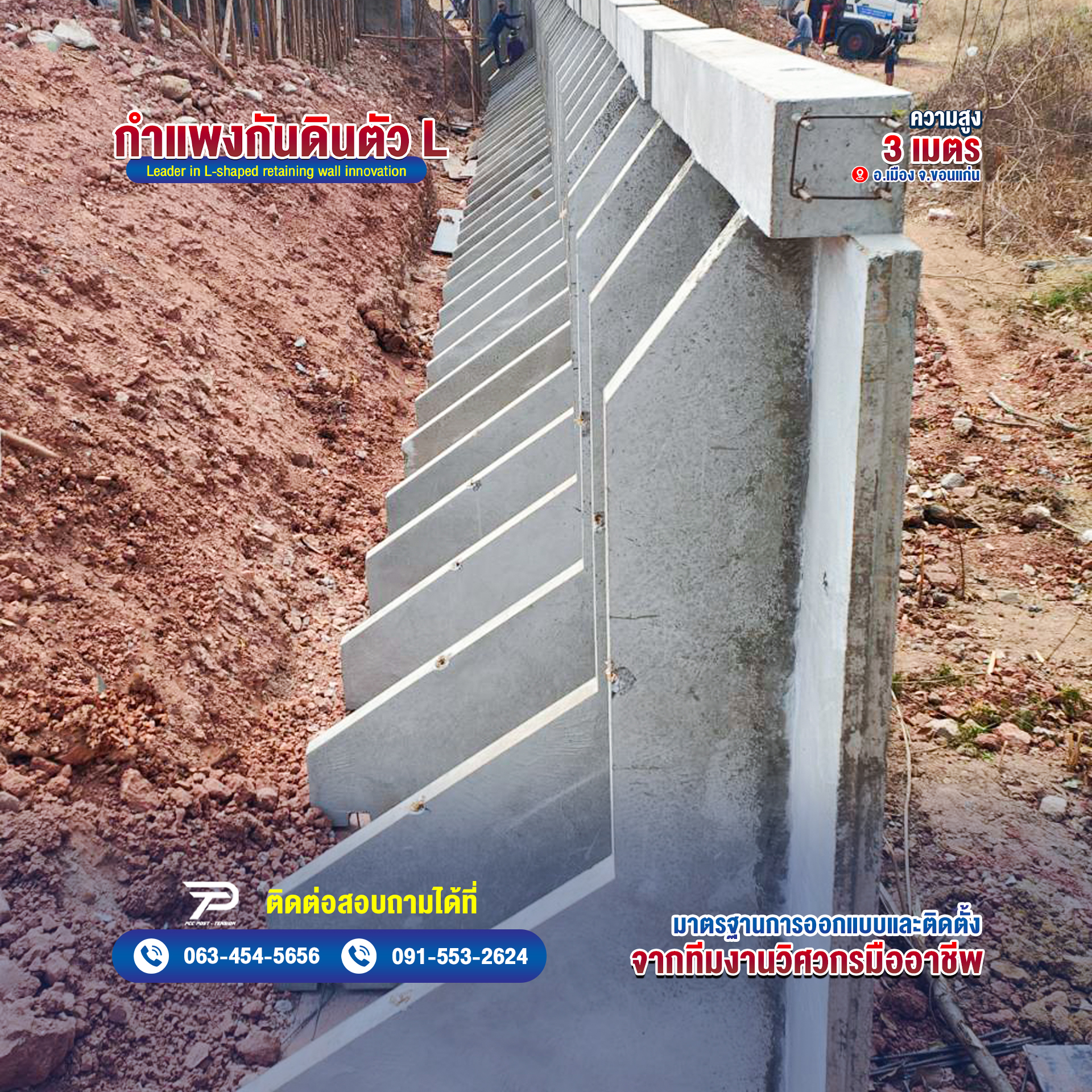 @pcc.kk กำแพงกันดินตัว L ความสูง 3 เมตร บริการ ออกแบบ และติดตั้ง จากวิศวกรที่มีประสบการ #กําแพงกันดิน #พีซีซีขอนแก่น #โพสเทนชั่น #งานก่อสร้าง #รั้วบ้าน #อุปกรณ์รั้วสําเร็จรูป #รั้วสําเร็จรูป ♬ เสียงต้นฉบับ – พีซีซี โพสเทนชั่น ขอนแก่น